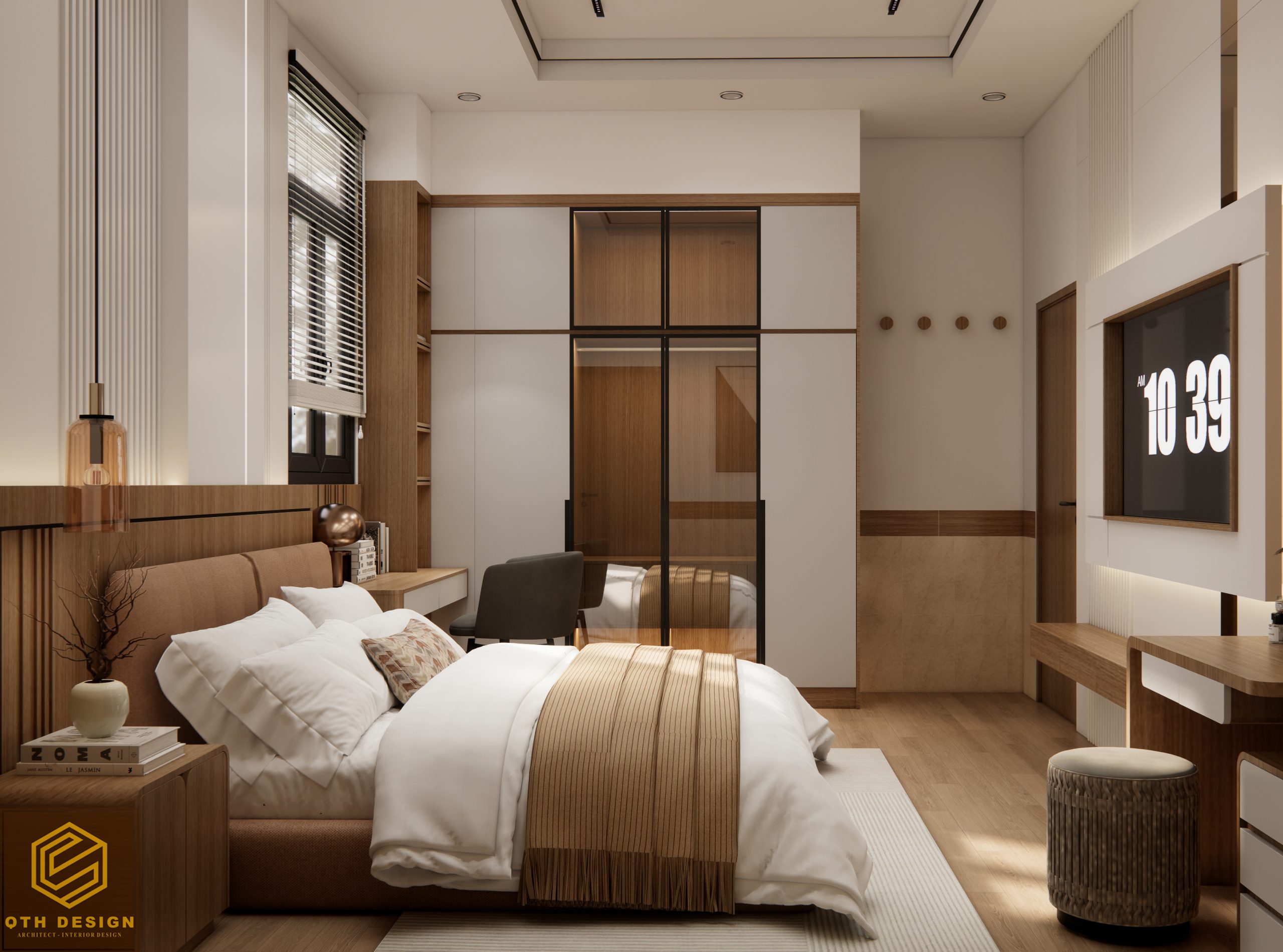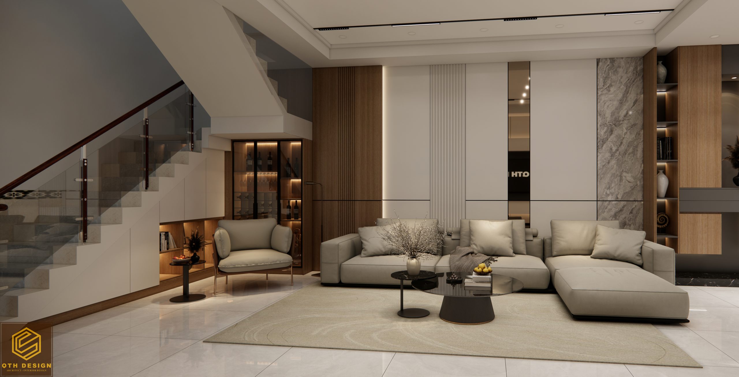 Tổng thể nội thất theo phong cách hiện đại kết hợp tối giản với gam màu trung tính, bố cục hợp lý, nhấn mạnh vào công năng và sự tinh tế trong từng chi tiết, một không gian sống hiện đại, ngôi nhà là một thiết kế lý tưởng cho những ai theo đuổi phong cách sống tối giản nhưng đầy tính nghệ thuật.